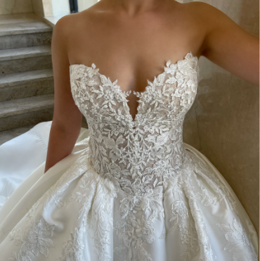 Our 2023 ÉTOILE collection is all about being light, fresh, and flirty! Just like 2023 ÉLYSÉE, the newest ÉTOILE collection showcases more skirt slits on classic A-line gowns for a modern, sexy look. Ruffled horsehair A-line skirts also amp up the fun and flirty vibes -- plus, we've got floral lace and high illusion backs that are to die for!