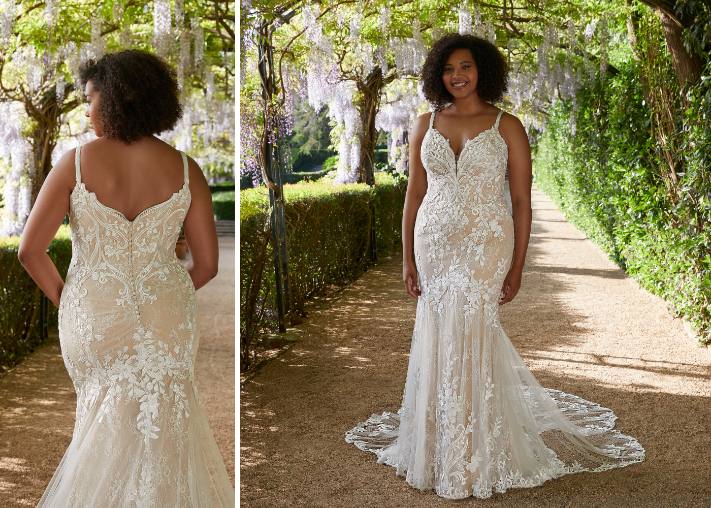 Next up is 2023 ÉLYSÉE Atelier bringing all the glamour and then some! This year's collection features all-new intricate lace designs and stunning double sculpted trains on classic A-line, ball gown and mermaid silhouettes. Detachable overskirts provide effortlessly versatile styling options... and check out the gorgeous gown below with a matching veil for the most ultra-romantic look.