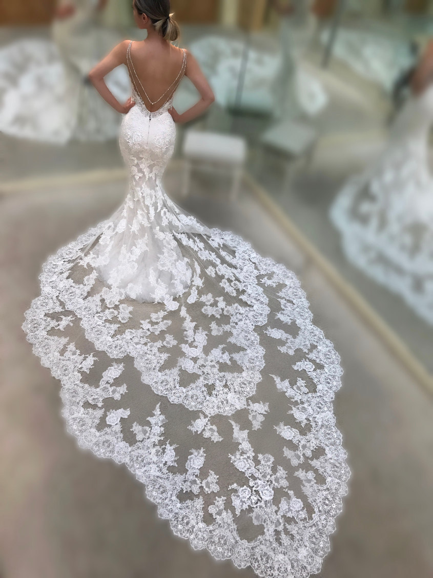 A Gorgeous Mermaid Style with a Jaw-Dropping Lace Train
