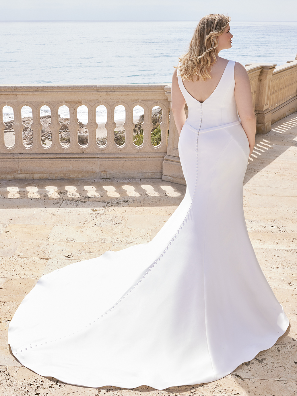Picture-perfect, modern elegance. MORGAN x Édition is a structured, sleek trumpet silhouette gown with a unique draped deep V-neckline and a sweet bow belt detail. This all-Mikado gown is perfect for brides searching for the perfect sophisticated, minimalist wedding dress look.