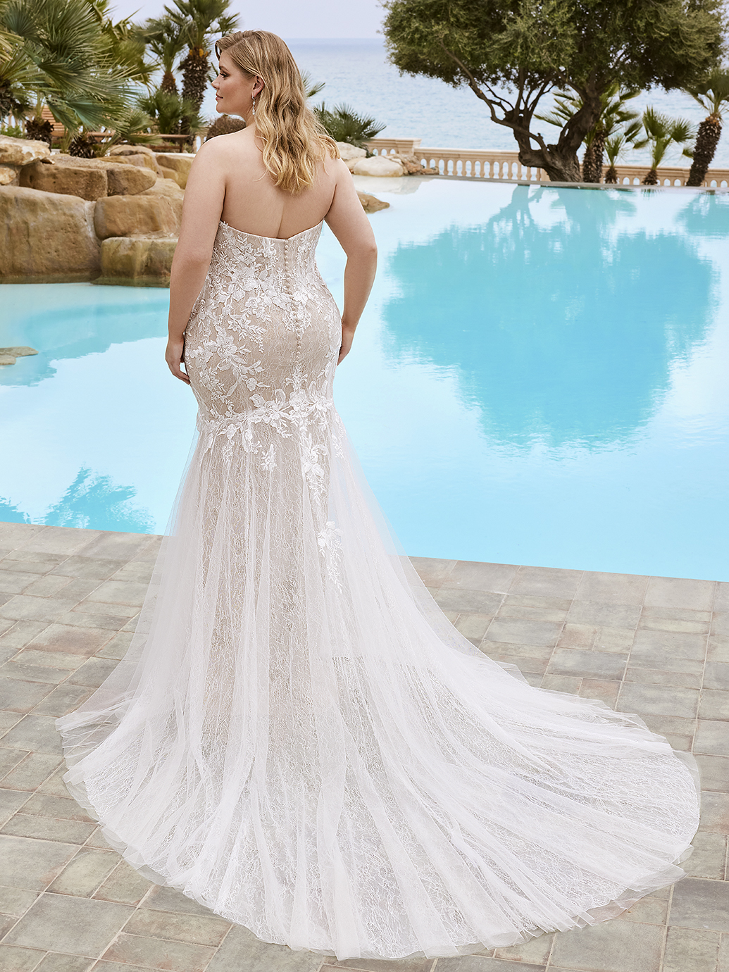 So much romance in one gown! TORI x Édition has us falling in love with her sparkling Chantilly and body-contouring embroidered floral lace on her delicate sweetheart neckline corset bodice. This gown is fitted through the knee before flowing down into a dreamy tulle and Chantilly lace train that will make everyone take a second look at this gorgeous gown!