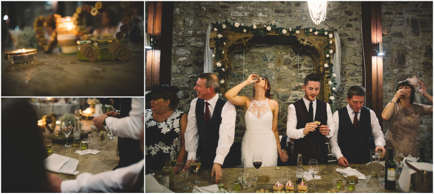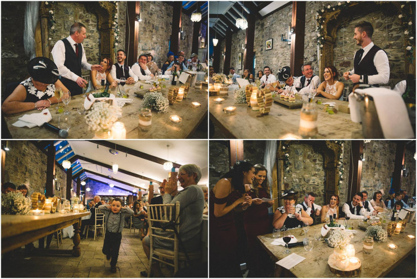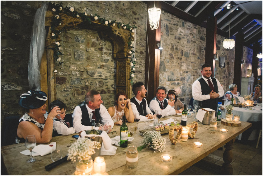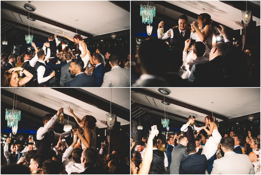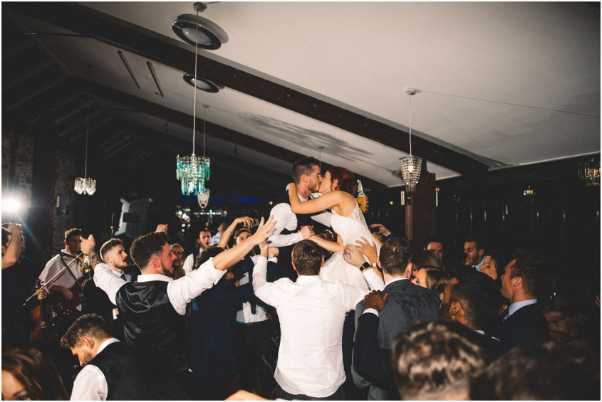 Our favourite memory of the day happened towards the end of the night just as the photographer was packing his equipment away. The band started to play one of our favourite Mumford and Sons songs, and the dance floor was packed full of our friends and family. One of my friends lifted me onto his shoulders and then someone else did the same to Ffion - then we were dancing and singing on their shoulders in the middle of the dance floor, surrounded by all of our favourite people.