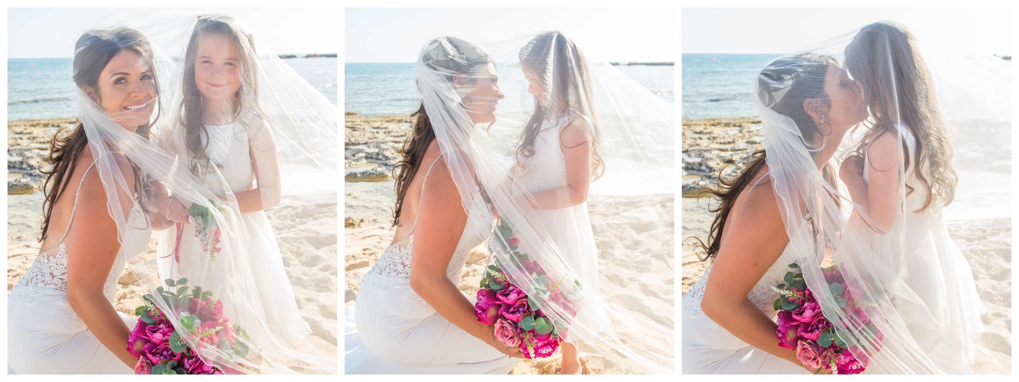From childhood sweethearts to newly-weds in Cyprus. We can't help but feel a little envious of Jade and Danny's love story and of their dreamlike destination wedding. The beautiful, crystal blue Mediterranean shoreline of Ayia Thekla beach offers the most idyllic backdrop for this sweet and relaxed beach wedding. Read on to see how Enzoani Real Bride Jade WON her favourite Blue by Enzoani gown and ended up with two gorgeous gowns!