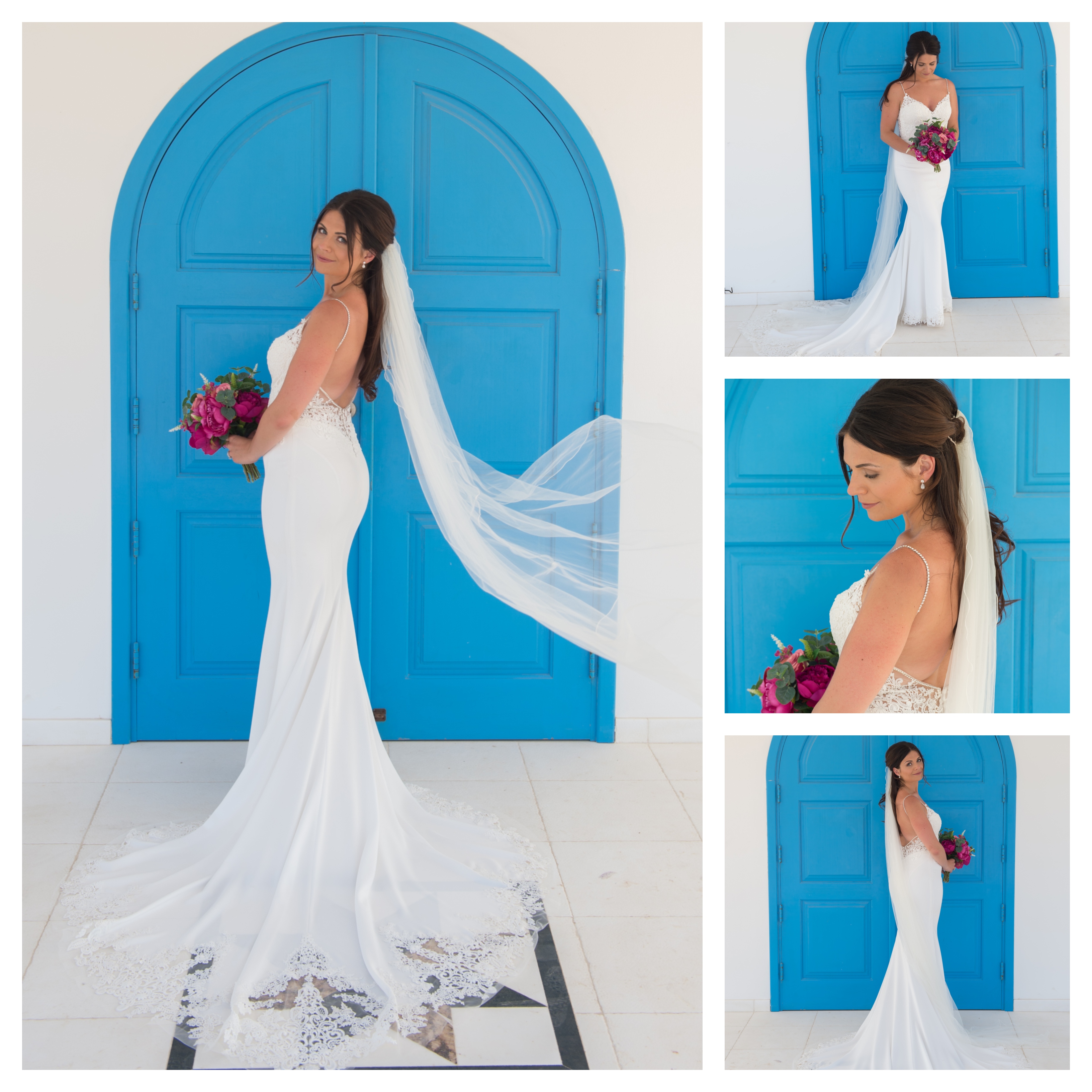 Once I tried the Juri dress on I just knew it was "the one", it was the perfect destination wedding dress. I fell in love with the back of the dress first, the detail was just amazing and the diamond straps added a bit of glamour to a simple style. I loved that it was half lace and half plain at the bottom as it really flattered my figure. The detail at the bottom of the dress was just beautiful and the train was a gorgeous feature which made the dress feel so bridal and looked amazing in the photos.