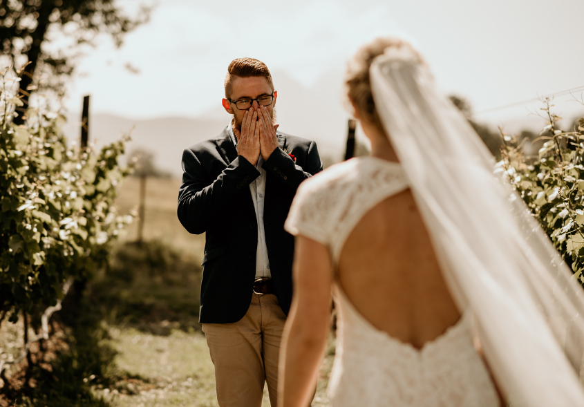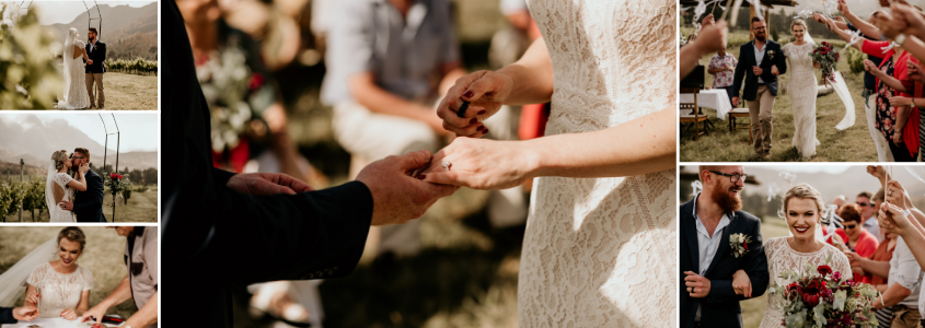 From day one, Francois and I said we wanted a small intimate wedding where the whole day was about us and our love – we wanted to celebrate us. We thus decided to have only our closest and dearest friends and family there for the whole weekend. There were only 16 guests to celebrate the weekend with us. The ceremony was in the vineyards with mountains surrounding us, it was just us and our small group of friends and family. It was so personal and intimate, exactly what we wanted. It was perfect.