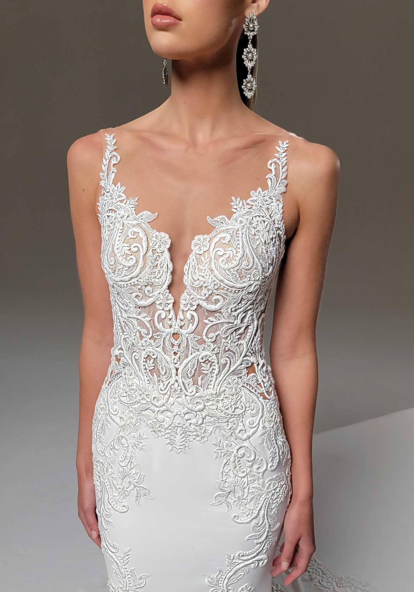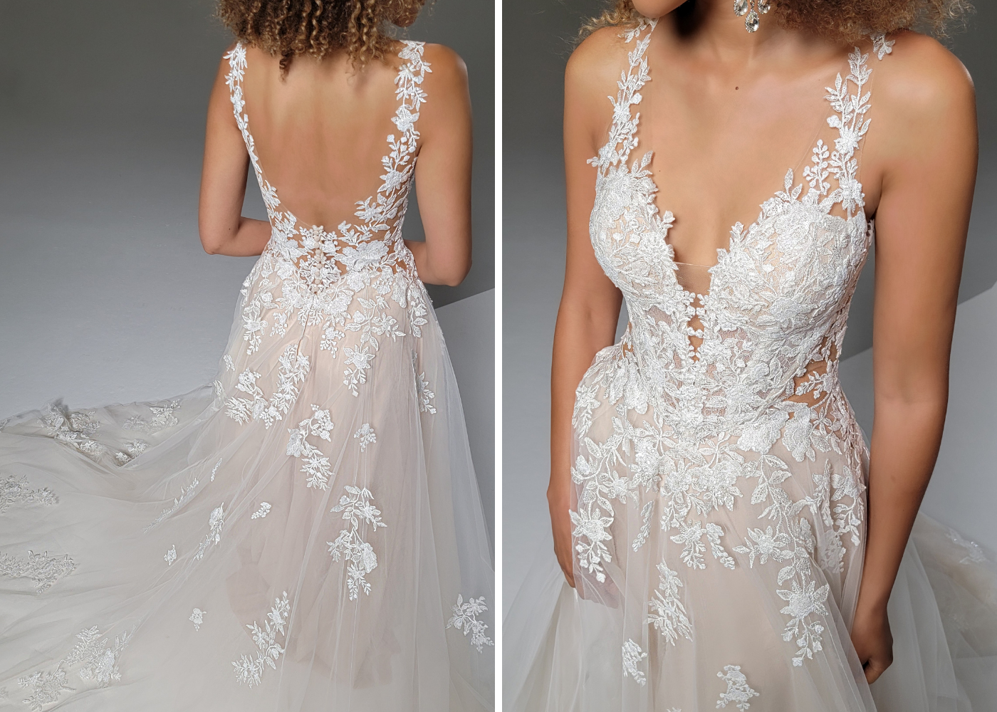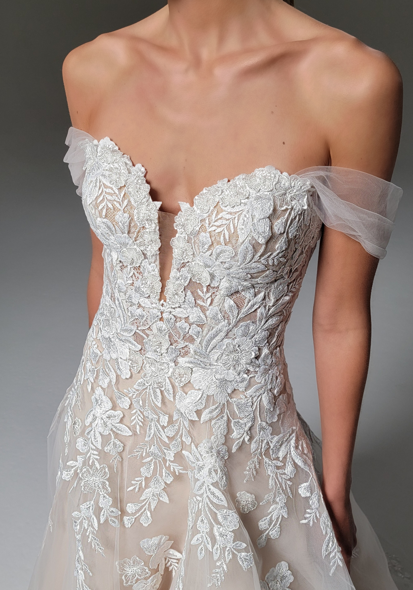 Wearing PENELOPE is sure to make any bride feel like they are in a beautiful dream come true! Her classic, flowing A-line skirt is balanced with a sexy, modern V-neckline.
