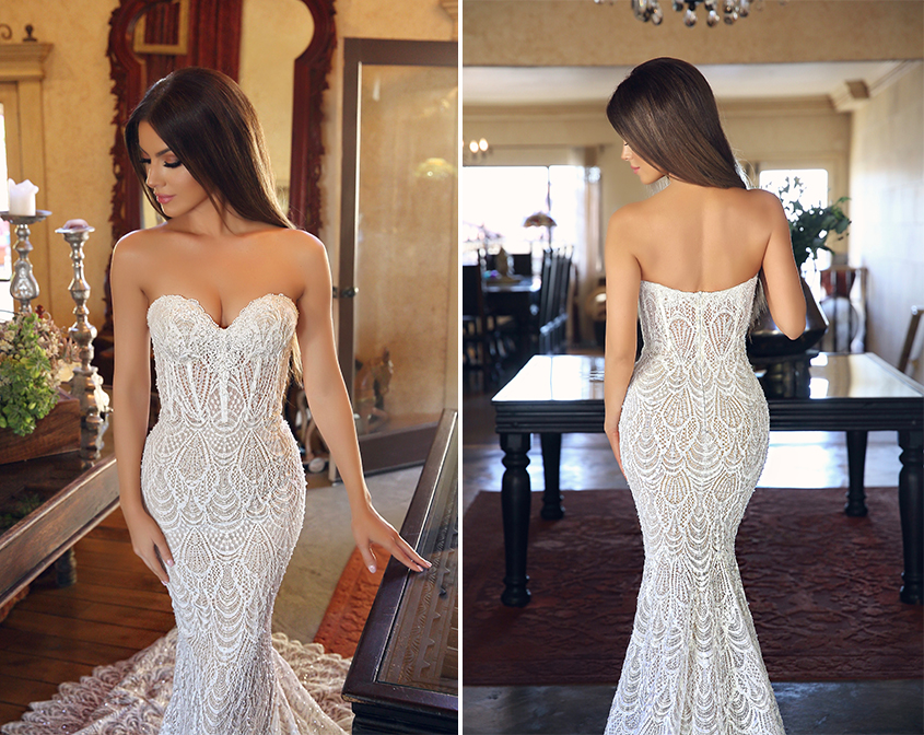 NIKITA first hit our social pages as it graced us with its presence on Cabo's tropical shores. This curve-hugging mermaid gown is sure to be a favorite among brides with its regal lace pattern that gives it a sweet and sophisticated feel as opposed to traditional floral lace.